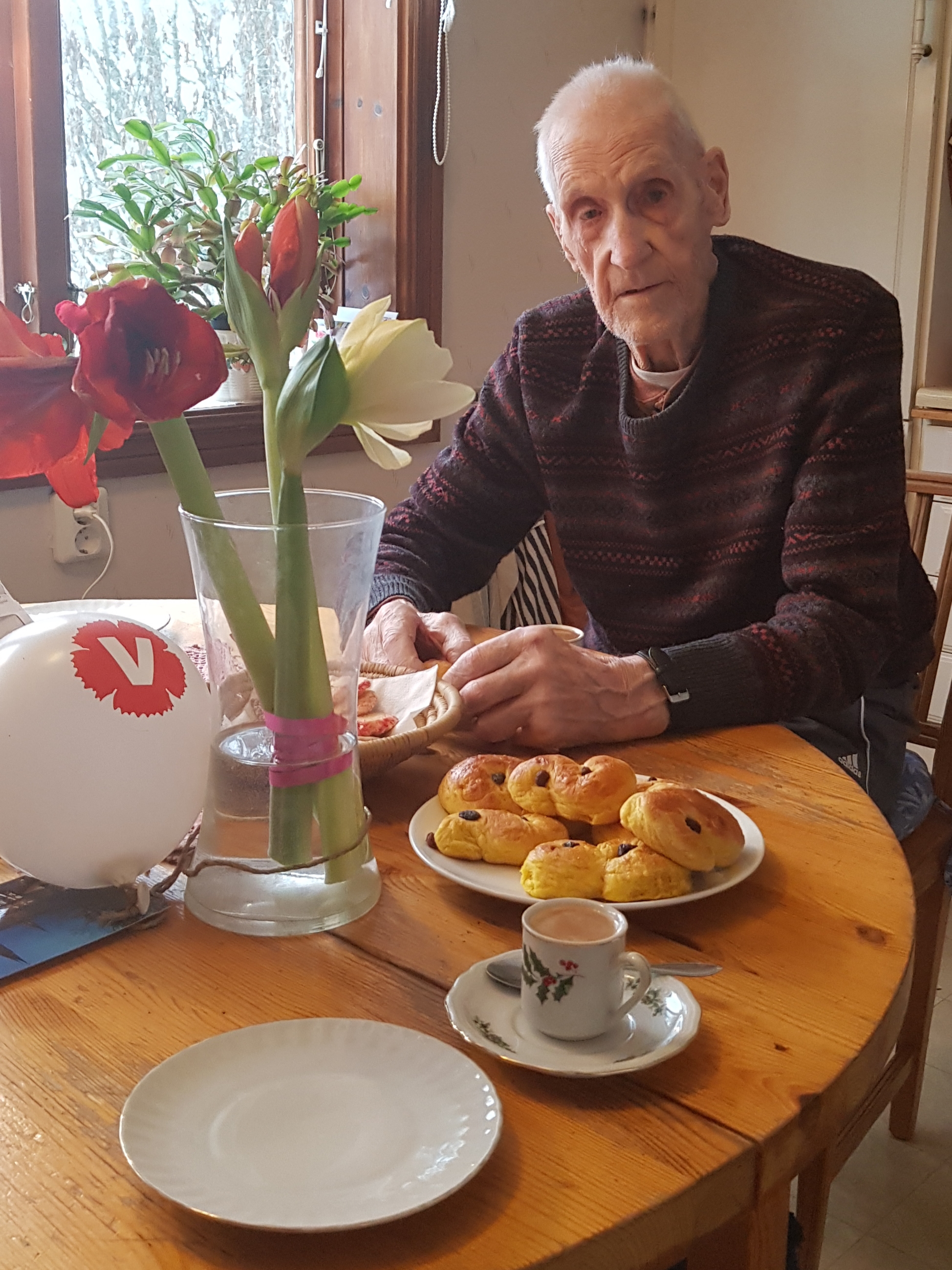 Bertil Carlsson gick med i partiet 1944. Det är 75 år sedan i år. Det firar vi med lussekatter.